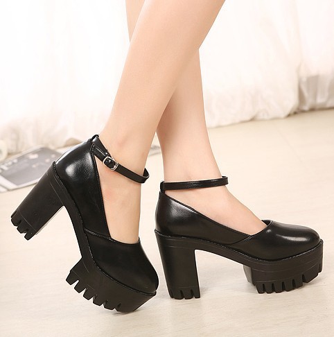black high heels with thick ankle strap